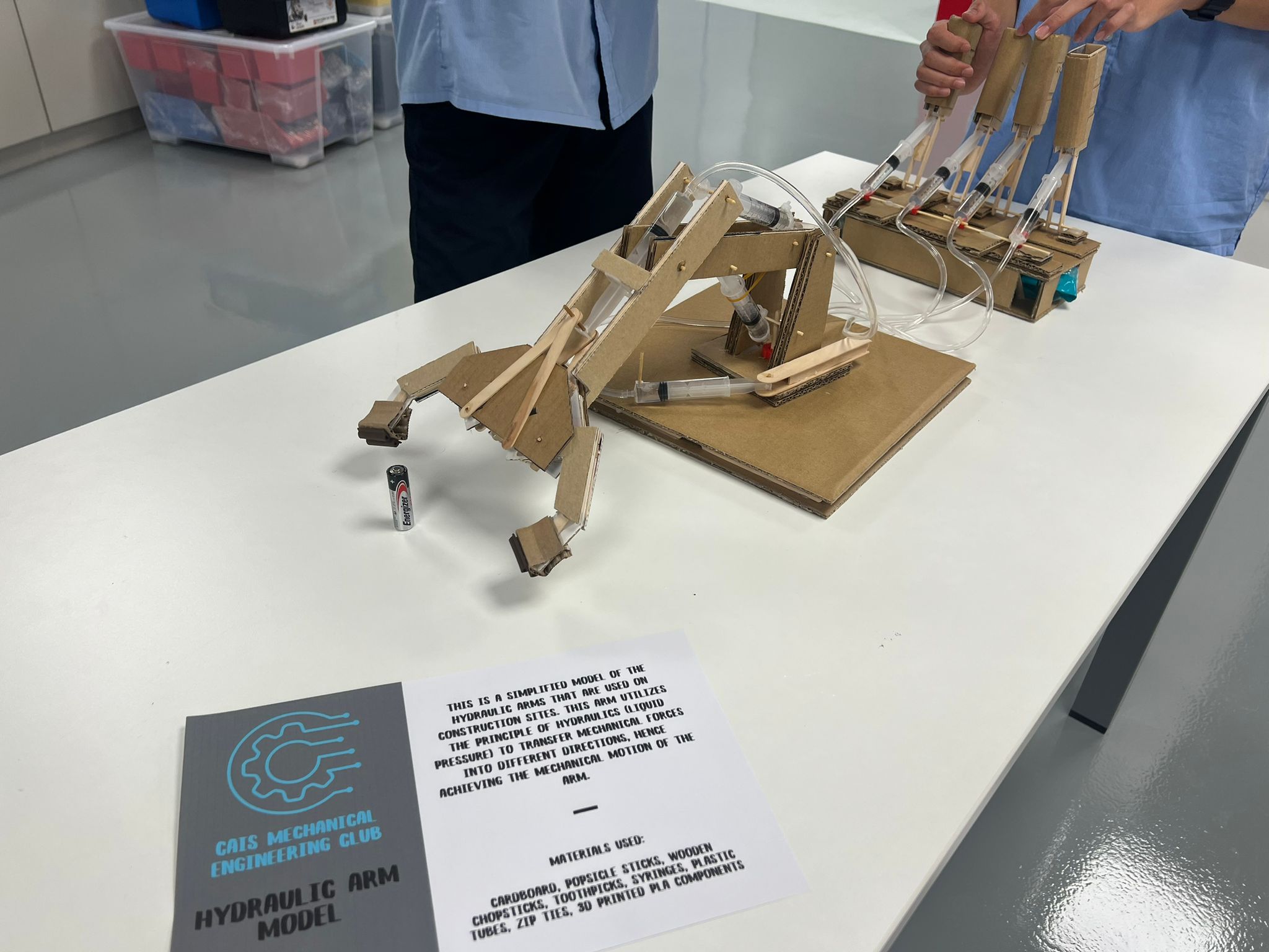 This special event marked an exciting partnership between the Mechanical Engineering Club and the school’s Bridge Club. We welcomed primary school students to our newly acquired STEM room, giving them a firsthand look at engineering in action. The collaboration featured interactive demonstrations of our projects, including the automated robot turret and various mechanical creations. We organized a hands-on bridge-building challenge where young students designed and constructed bridges using popsicle sticks and glue, with MEC members providing guidance on structural principles. This event successfully inspired younger students while strengthening interdisciplinary connections within our school community.